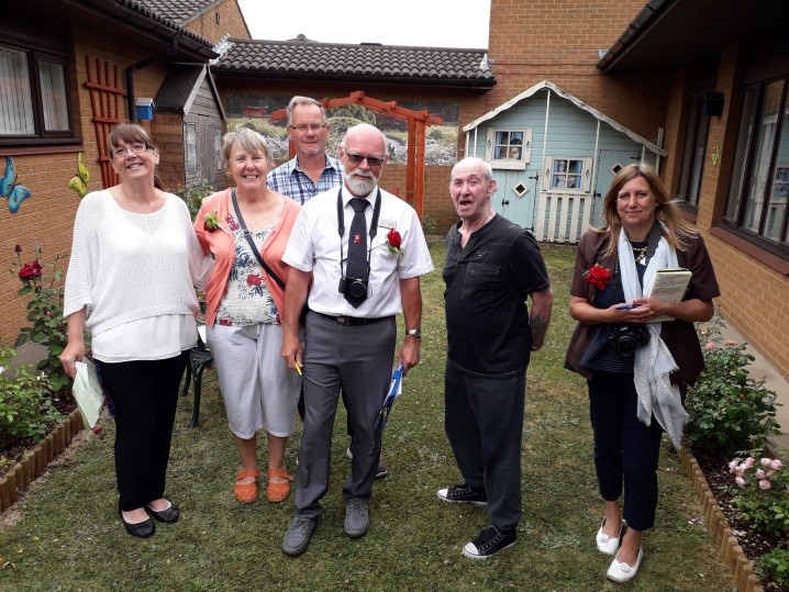 Eileen (sadly no longer with us) mapped out a fantastic design for the garden. With the help of residents, Roger, Iris, Barbara (our Activity volunteer), the Grimsby in Bloom Team, Grimsby Garden Centre (who helped us with the roses), The Rock Foundation (local charity that supports people with learning disabilities who made the arches and bench), the garden, as the following photos show, has worked out wonderfully.