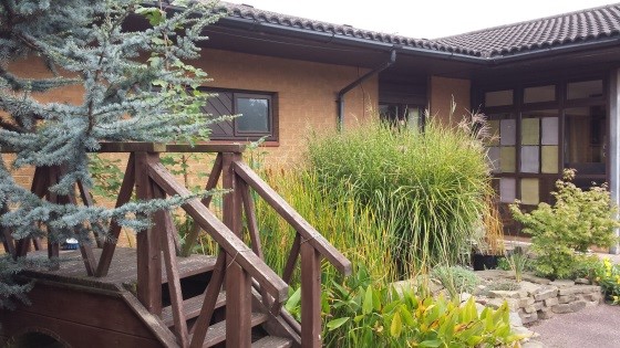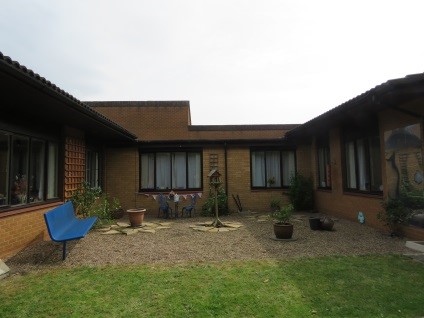 With apple and pear trees, lots of buddleia for the butterflies and bees and a wildflower meadow. This is visible from our activity room and gives people an alternative to the more traditional garden.