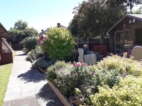 St Margaret’s’ Activity Coordinator, Iris Reader, started the project back in 2012 with the help of Roger Snowdon, Maintenance and Bill Auld, resident. The aim was for residents to have a peaceful and interesting view from their bedroom windows and areas that were stimulating and safe for them to roam in. For those people who were mobile or could access the gardens with support, the team wanted to create a series of different spaces with lots of colourful planting and seating areas.