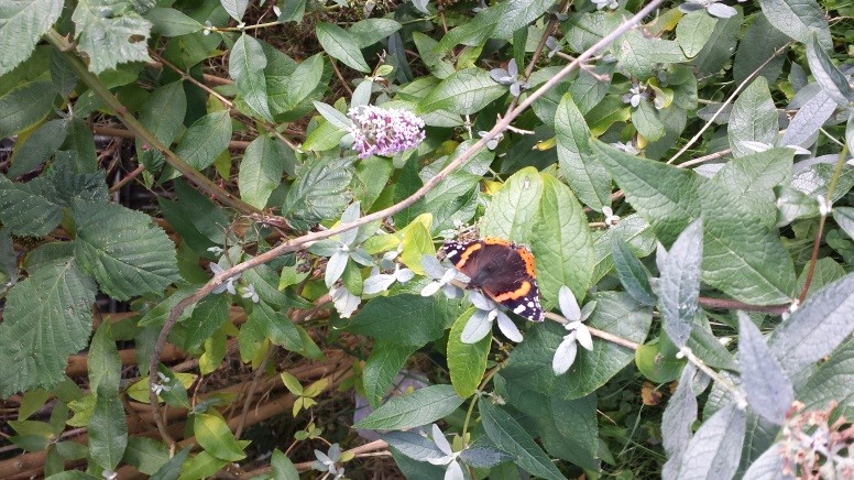 Our Buddleias are thriving and being attacked by butterflies and Bill and Iris regularly pick brambles.